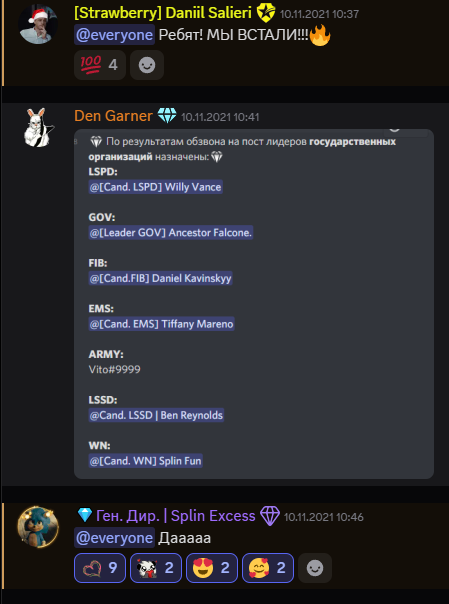 Мы решили собрать самые смешные и интересные мемы про GTA5RP в одном канале. Публикацией мемов занимался человек с ролью «Приколист». Изначально должность называлась «Специалист по созданию мемов», но первый назначенный человек попросил переименовать ее в «Приколист».